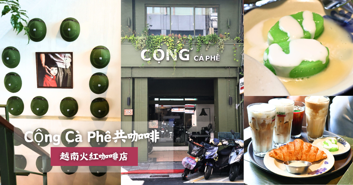 越南在地連鎖品牌「共咖啡」在台北有兩家分店,來台北開店是2024年的夏天,綠色建築物外觀非常吸引人,總店主要提供小點和飲品,二店空間比較大,有提供河粉等餐點,初訪想先喝喝看飲品是不是真的好喝!