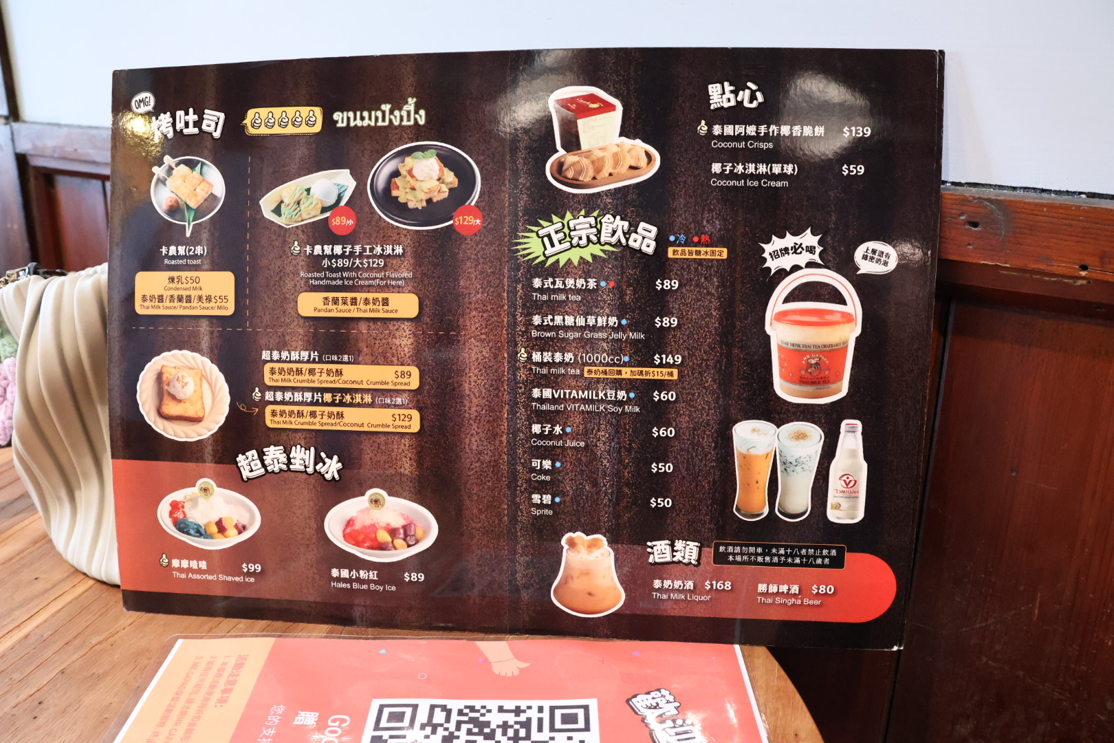 點心和飲品也都很有泰式的風味,經典泰奶還不夠有看頭,還有桶裝系列實在太酷了,連酒類都有泰奶,讓整體選擇更加多樣,滿足不同口味需求。