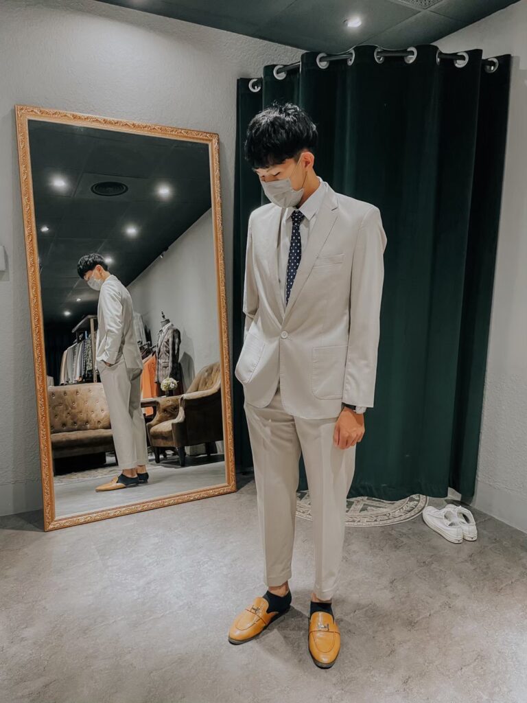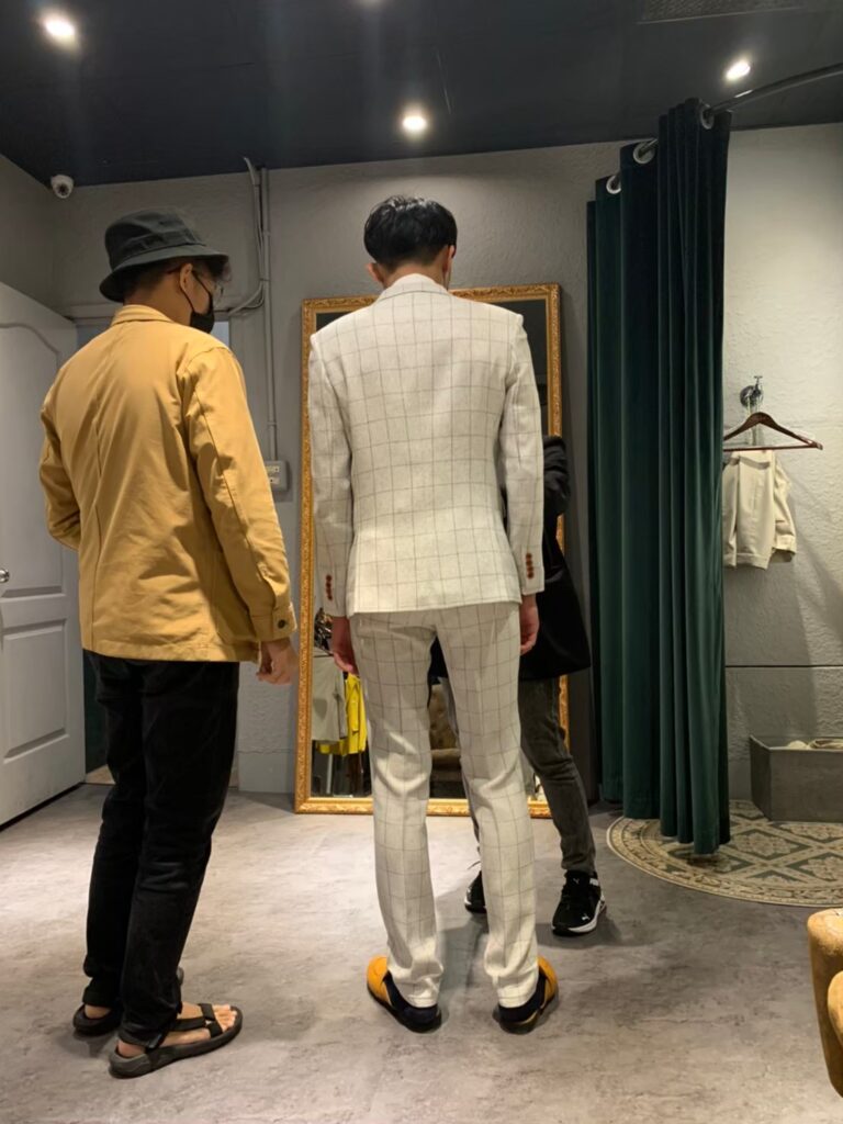 環境很舒適,服務人員也超會搭的,馬上就找到兩套很合適的西服,但有一套男友穿上全場讚不絕口,就決定只要這套了XD