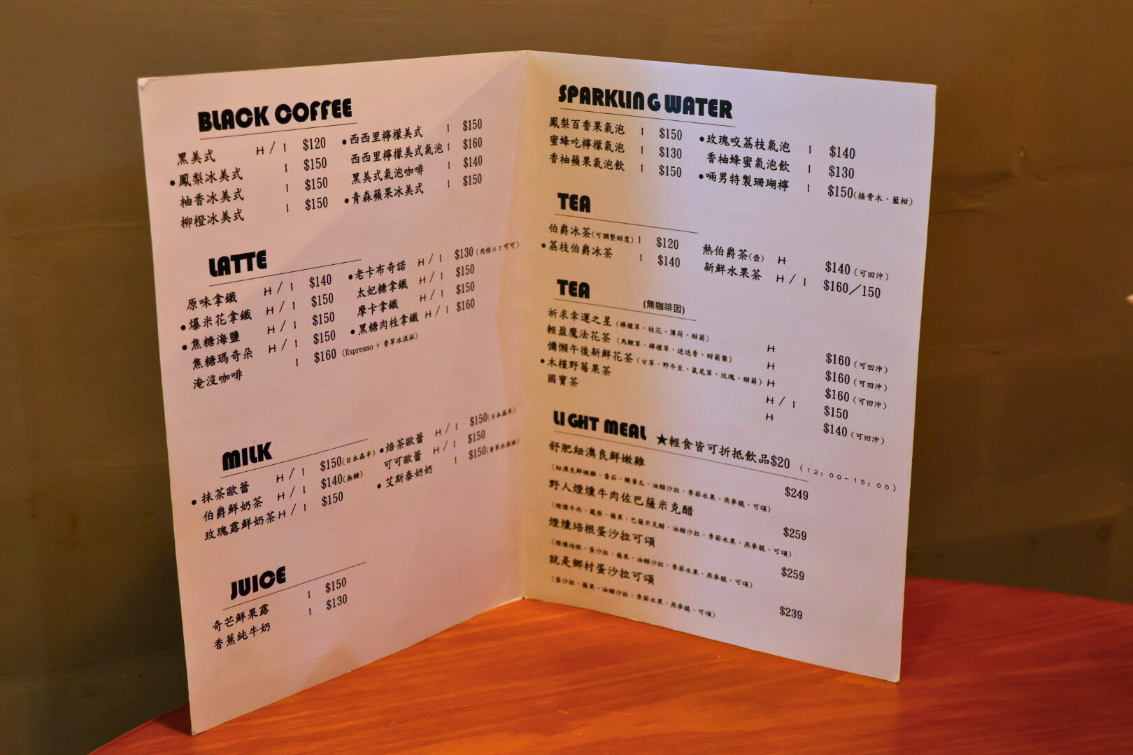 主要有黑咖啡、拿鐵、奶類、果汁、氣泡飲、茶、無咖啡因茶等,我覺得以非連鎖的甜點店提供的飲品來說,算是非常多元的。