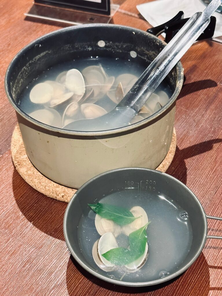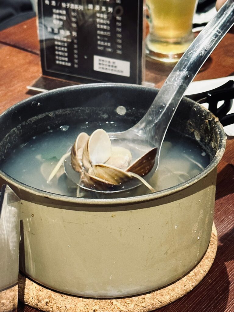 圖片上的是蛤蜊湯,也很不錯,味道挺鮮的,薑絲和九層塔香完美的和湯融合一起!
