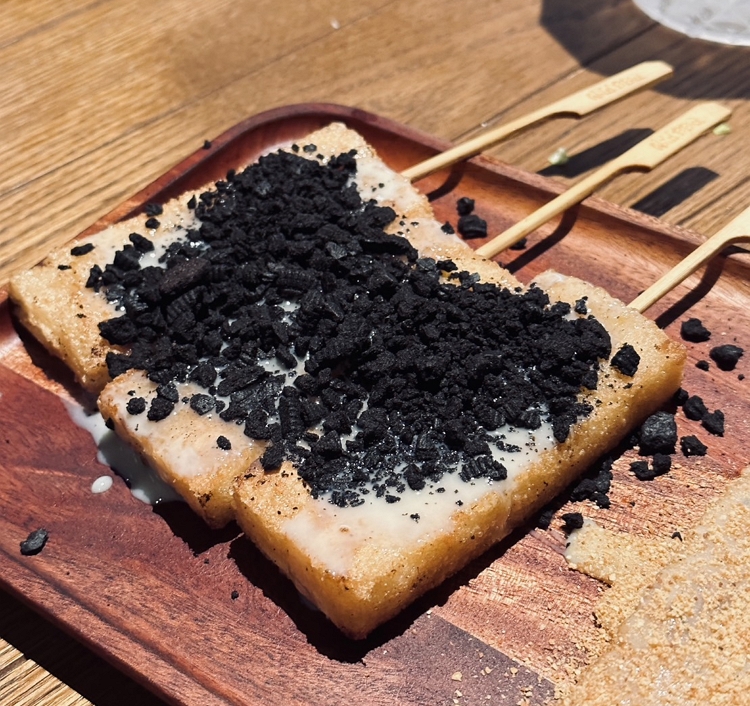 他們家的烤麻糬是串起來的,表皮微焦,淋上煉乳和撒些花生粉,另外一款煉乳搭Oreo也很讚,每次吃串燒一定會點的品項,但這道甜點要雷真的也不容易吧😂個人也很喜歡燒鳥串道的麻糬~是切一小小塊的!