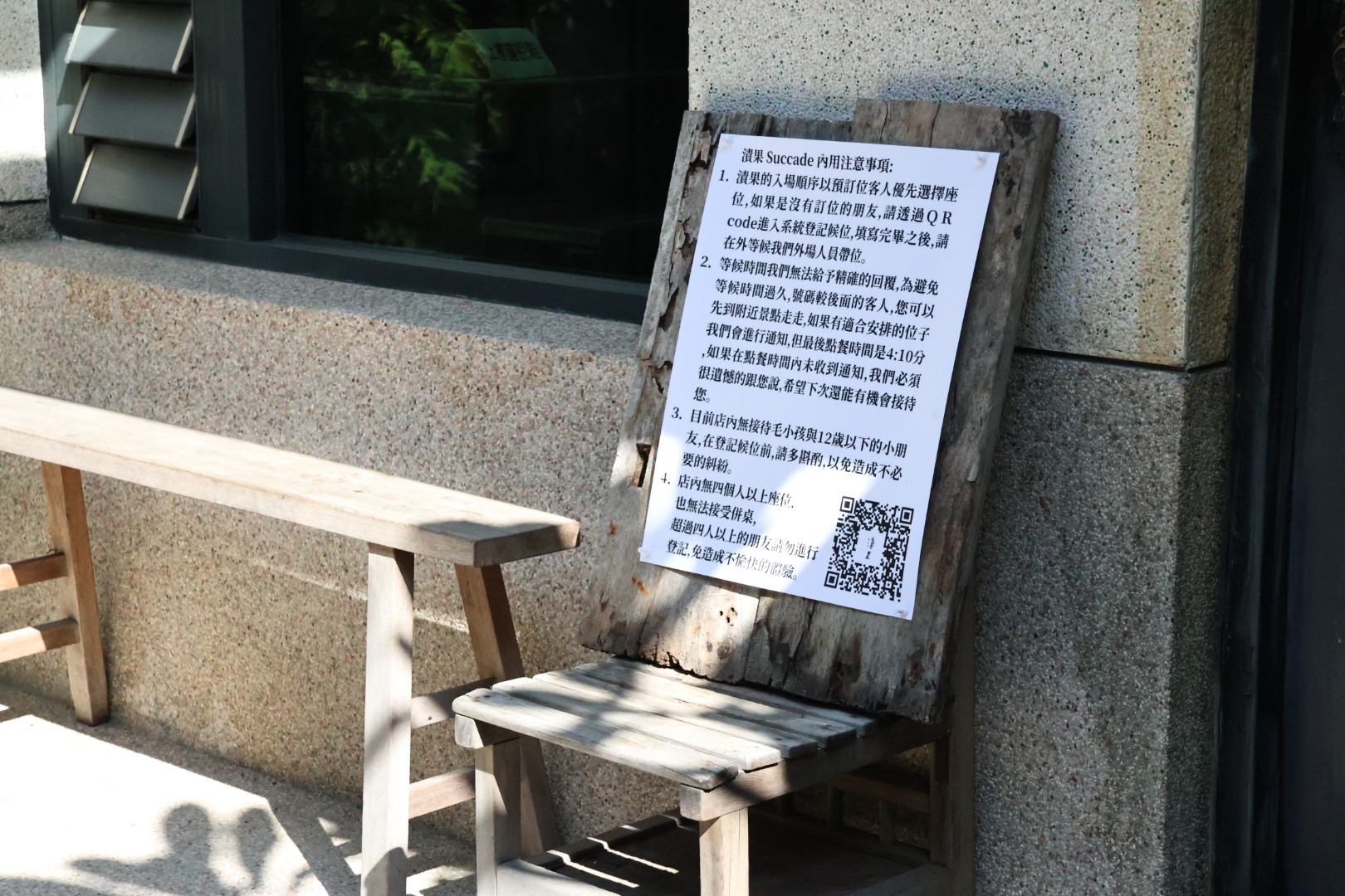 不少人會坐在木頭長凳上拍照,或是等候內用座位,我在店門口坐著等待開門,看著周邊的綠植,彷彿將時間慢了下來,讓心靈在這片靜謐中得到片刻療癒。