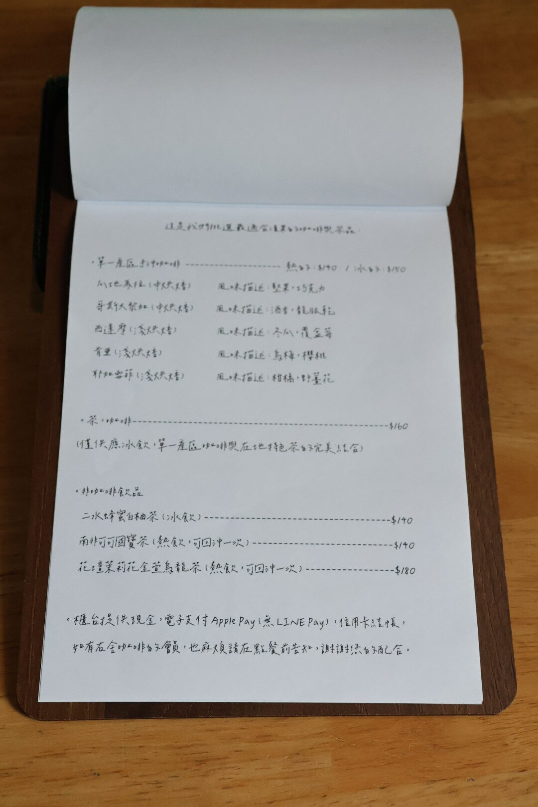 店內品項很簡單,單一產區手工咖啡、茶咖啡、果茶、茶品和甜點。