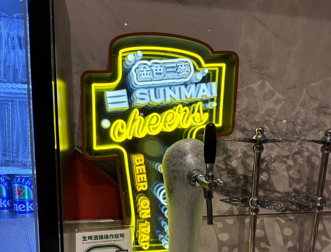 還有Lalaport店限定的金色三麥肯定要來一杯~可以從下面拿出透明杯,以斜拿的方式按下把手,一大杯的生啤酒~很佔胃的空間XD